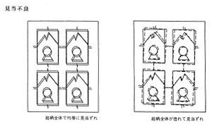 見当不良と類似した現象にダブリ(double)がある。ダブリとは、同一版の網点・画線がぶれのために2重にずれて印刷される現象をいうが、いわゆる網点・画線の再現性不良である。写真に正常な網点とダブリ(右)を示す。